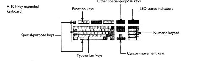 The computer keyboard has more keys than a typewriter. The following illustrations show you some of the functions and the placement of these keys.